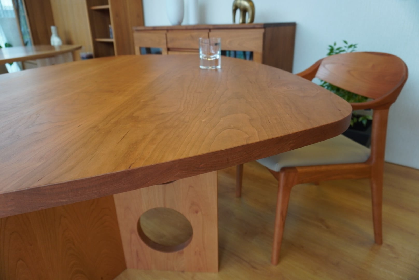 天板も、脚も、〈最高ランク〉のブラックチェリーの【無垢材】で製作しています。