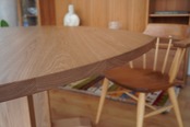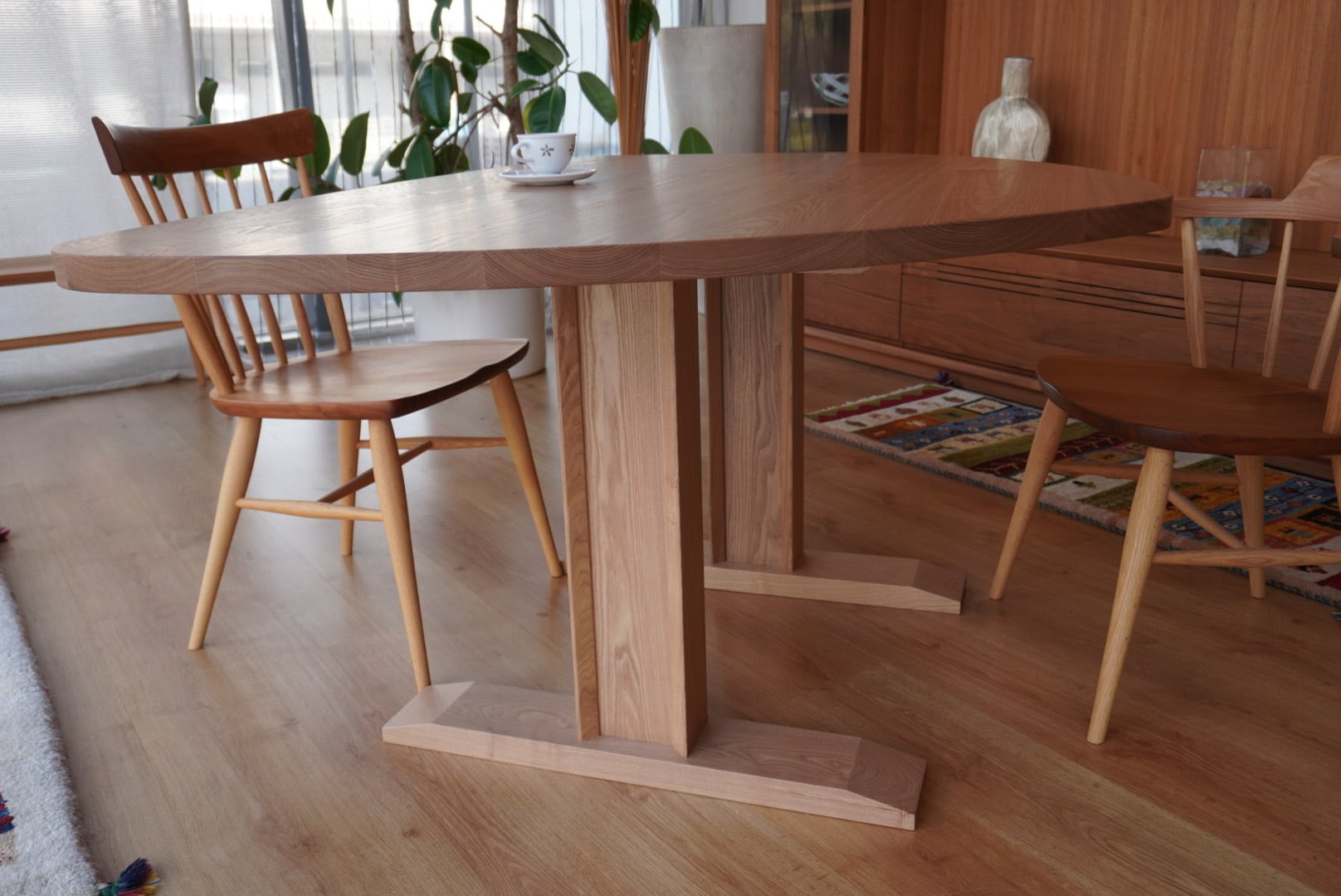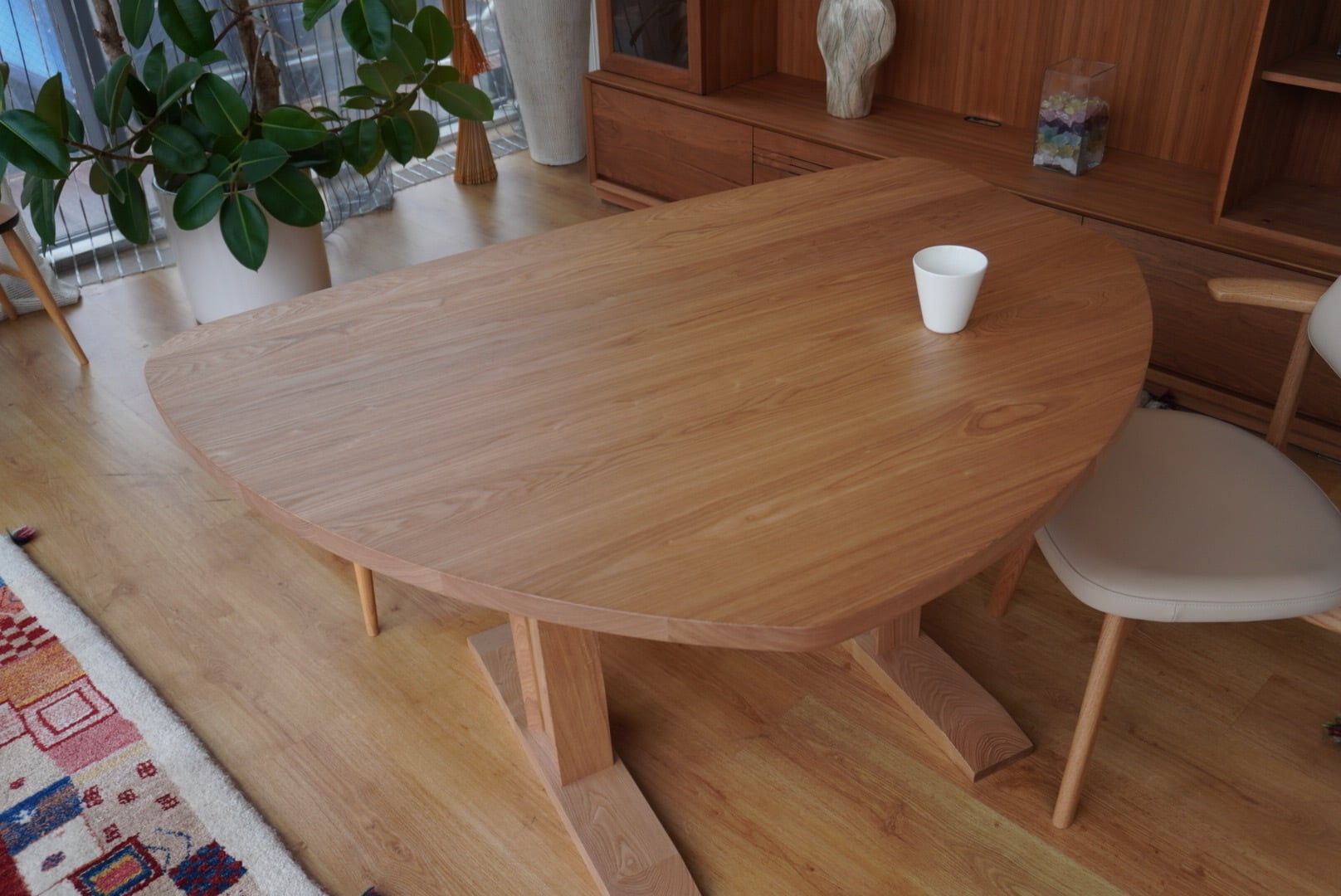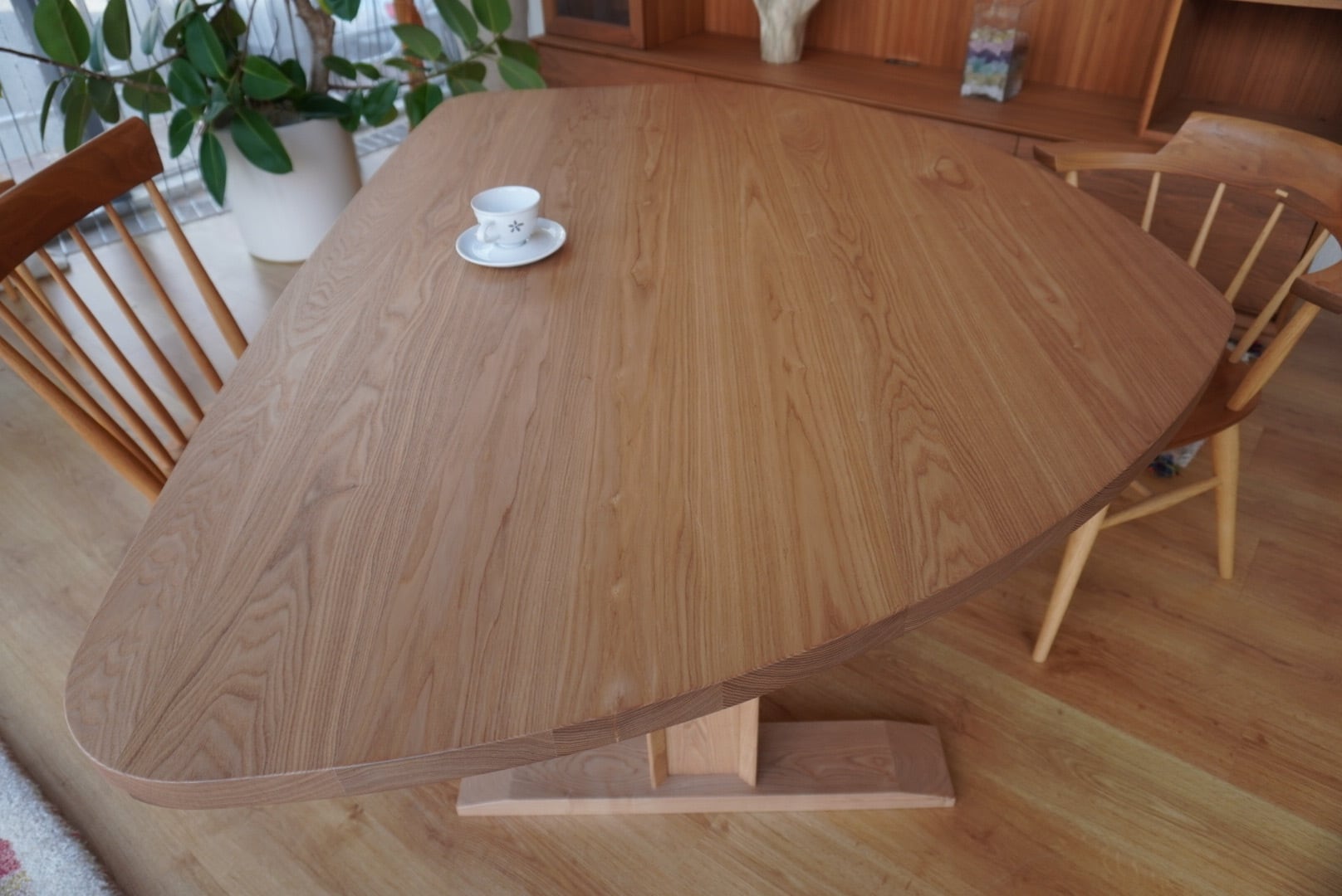 これだけ綺麗な曲線を描いたテーブルを【無垢材】で製作しますのは、とてもハードルが高いです。
