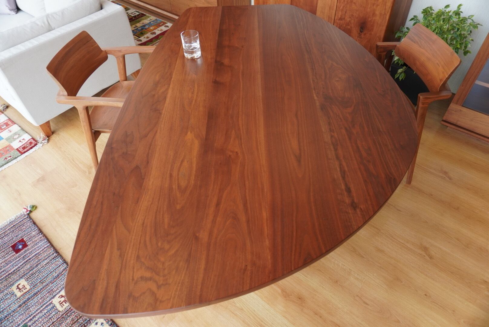 写真のタイプは、W1780 * D1150 * H700ミリ【樹種】ウォルナット材です。