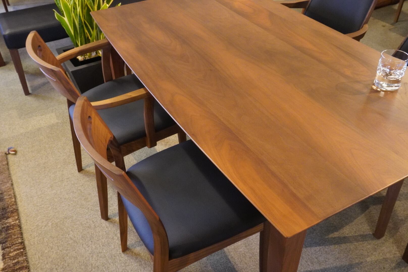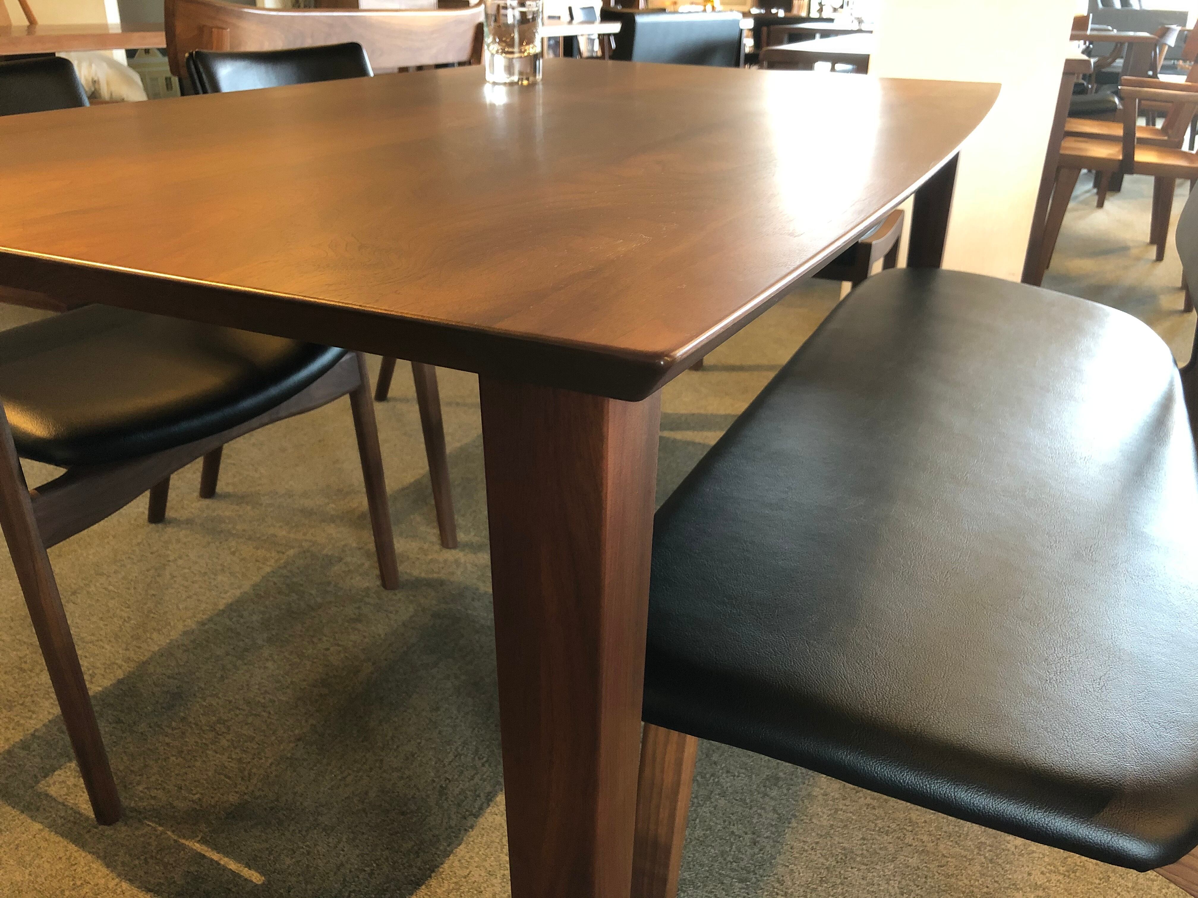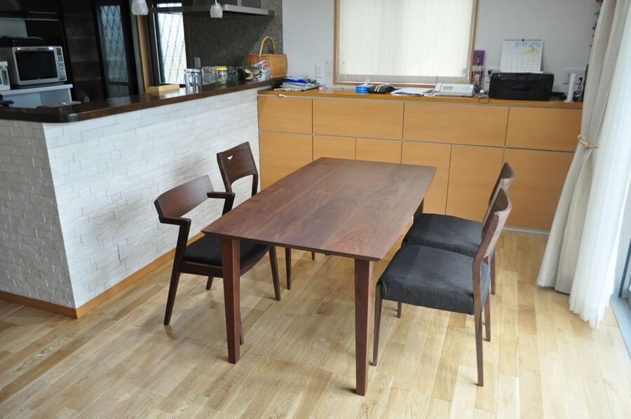 28ミリ厚のウォールナット無垢材の天板で木のいい質感が感じられます。