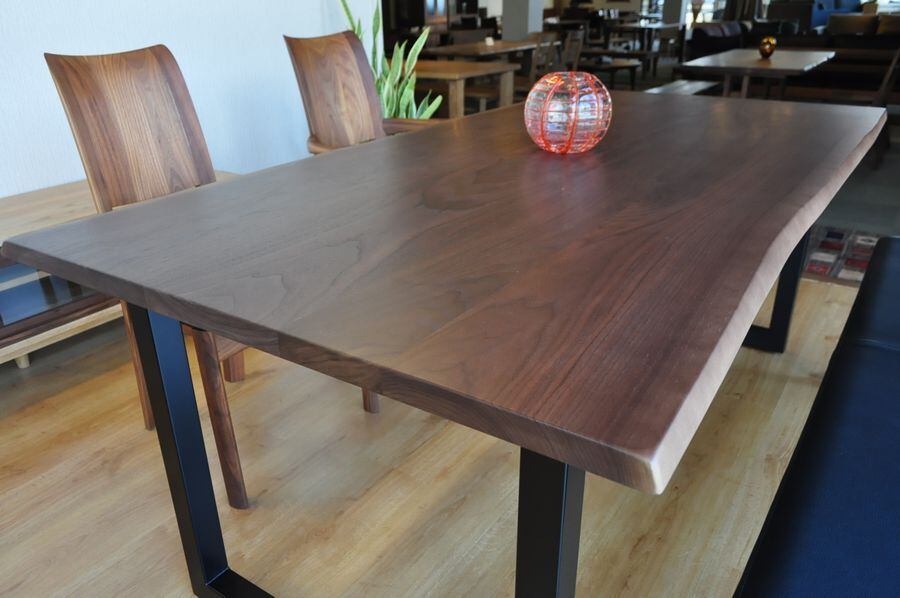 ウォールナット無垢材の天板で、厚みは3センチです,