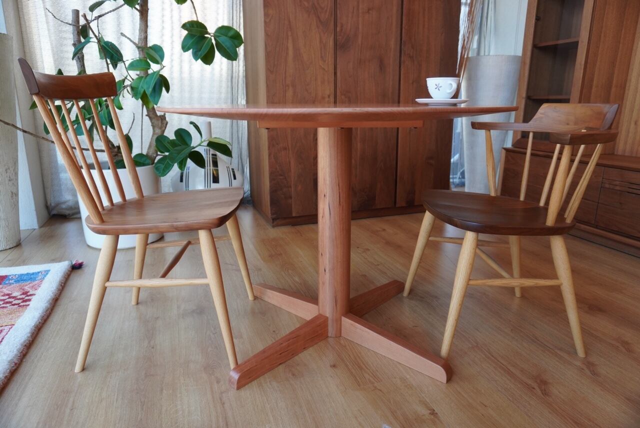ブラックチェリー無垢の、ステキな円形テーブルです。