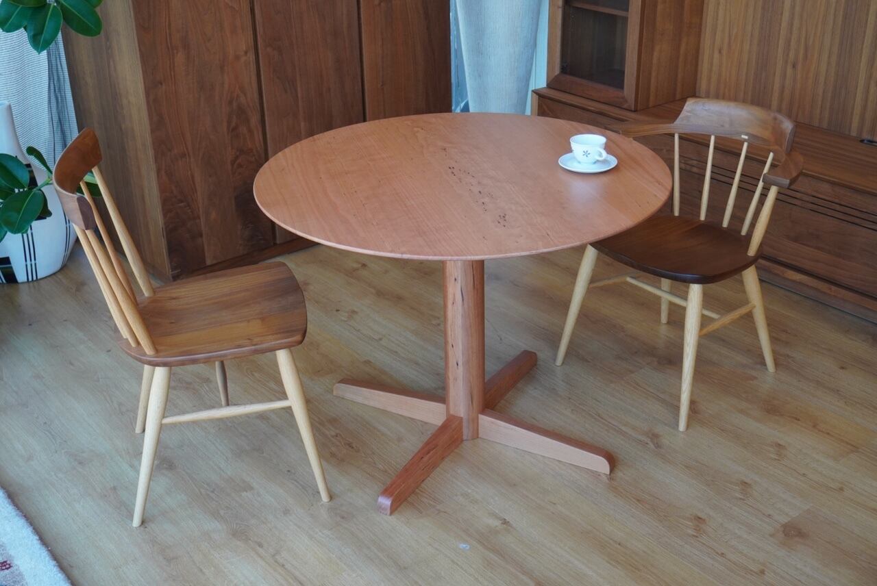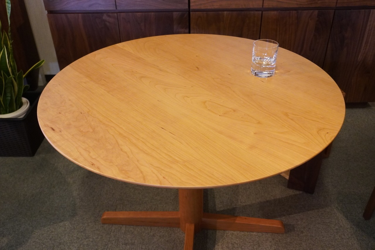 ブラックチェリー無垢の、ステキな円形テーブルです。