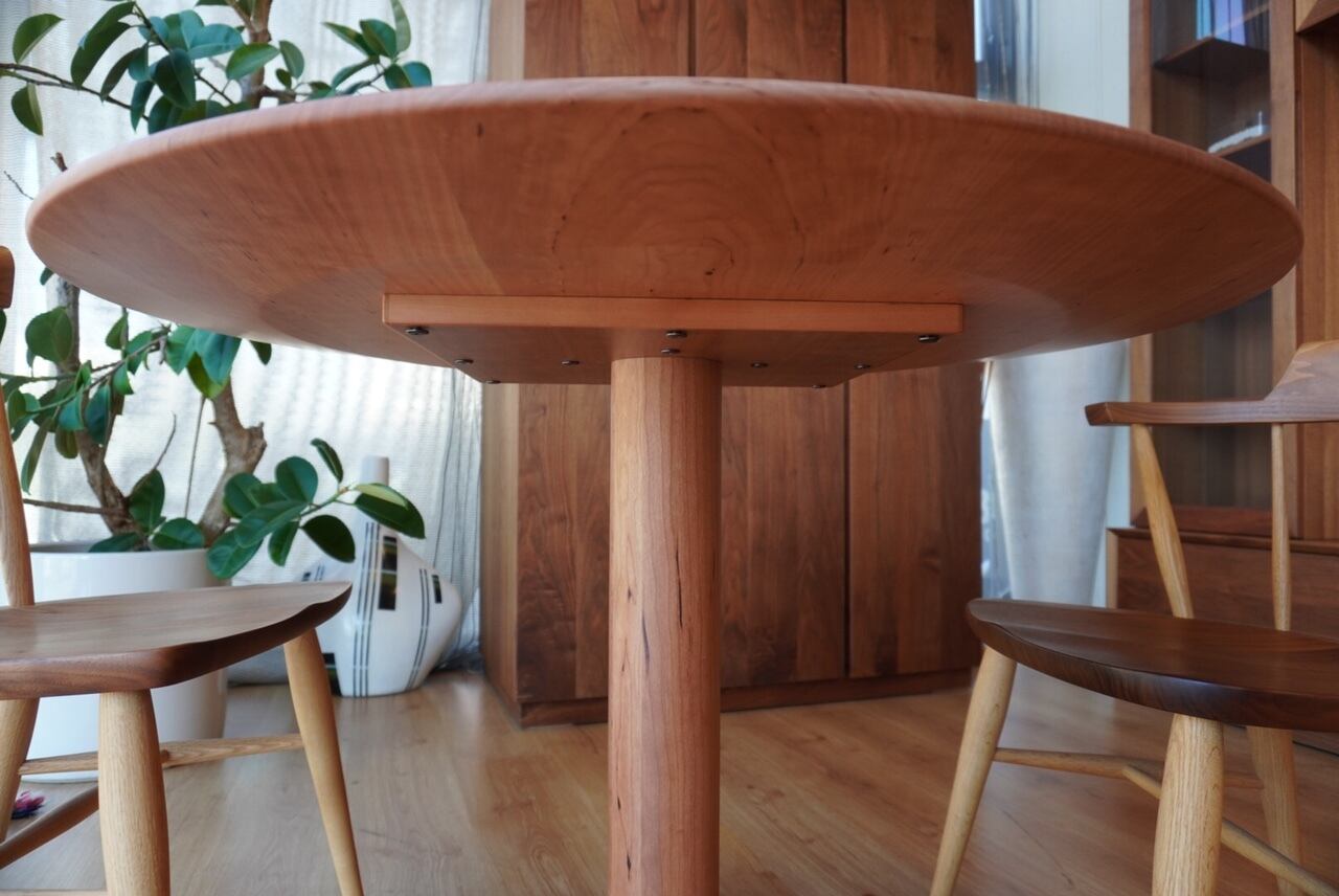 ブラックチェリー無垢の、ステキな円形テーブルです。