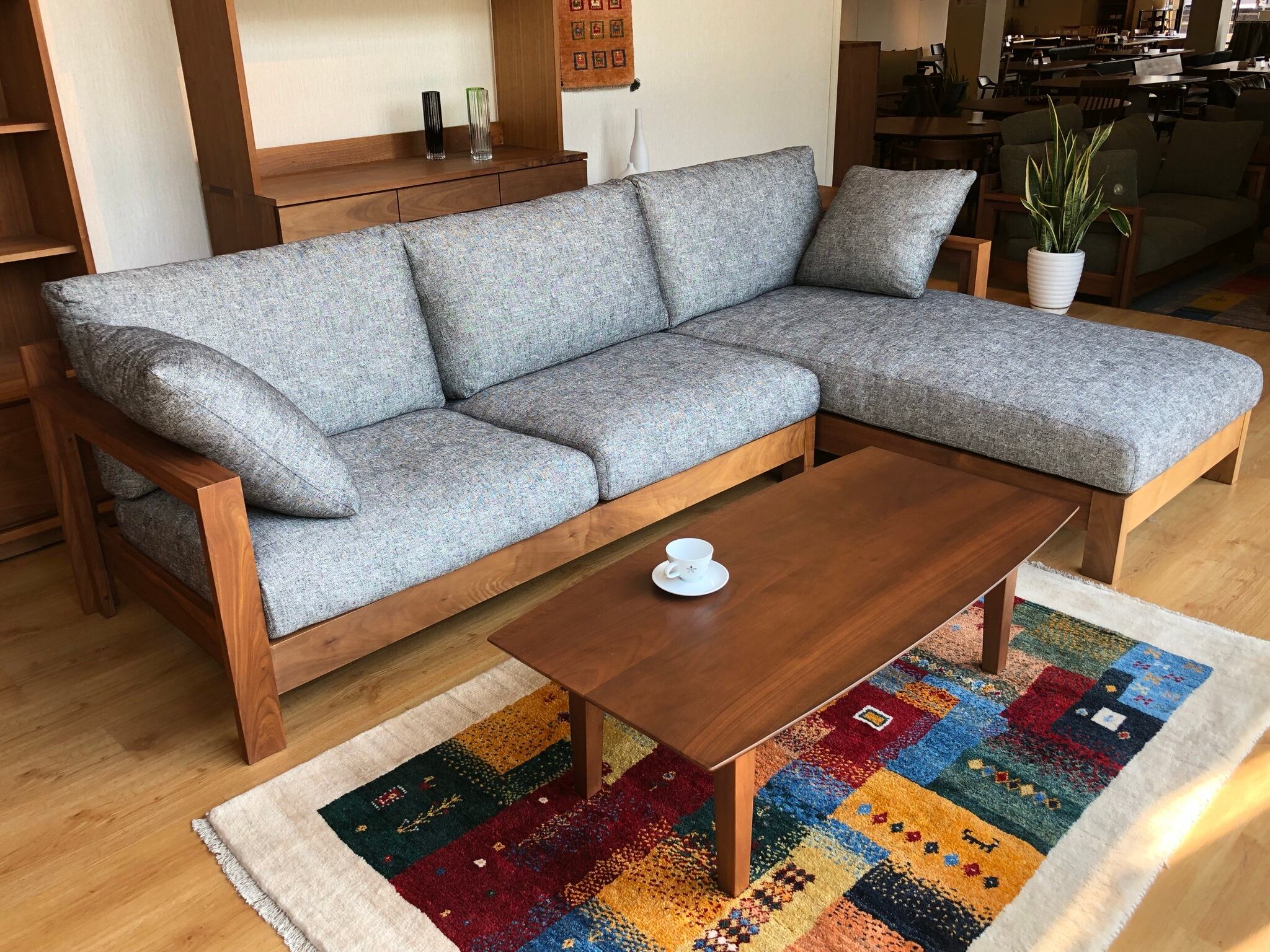 ウッドフレームでありながら、張りぐるみのカウチソファと同じように、身体がしっとりと心地よく包み込まれます。