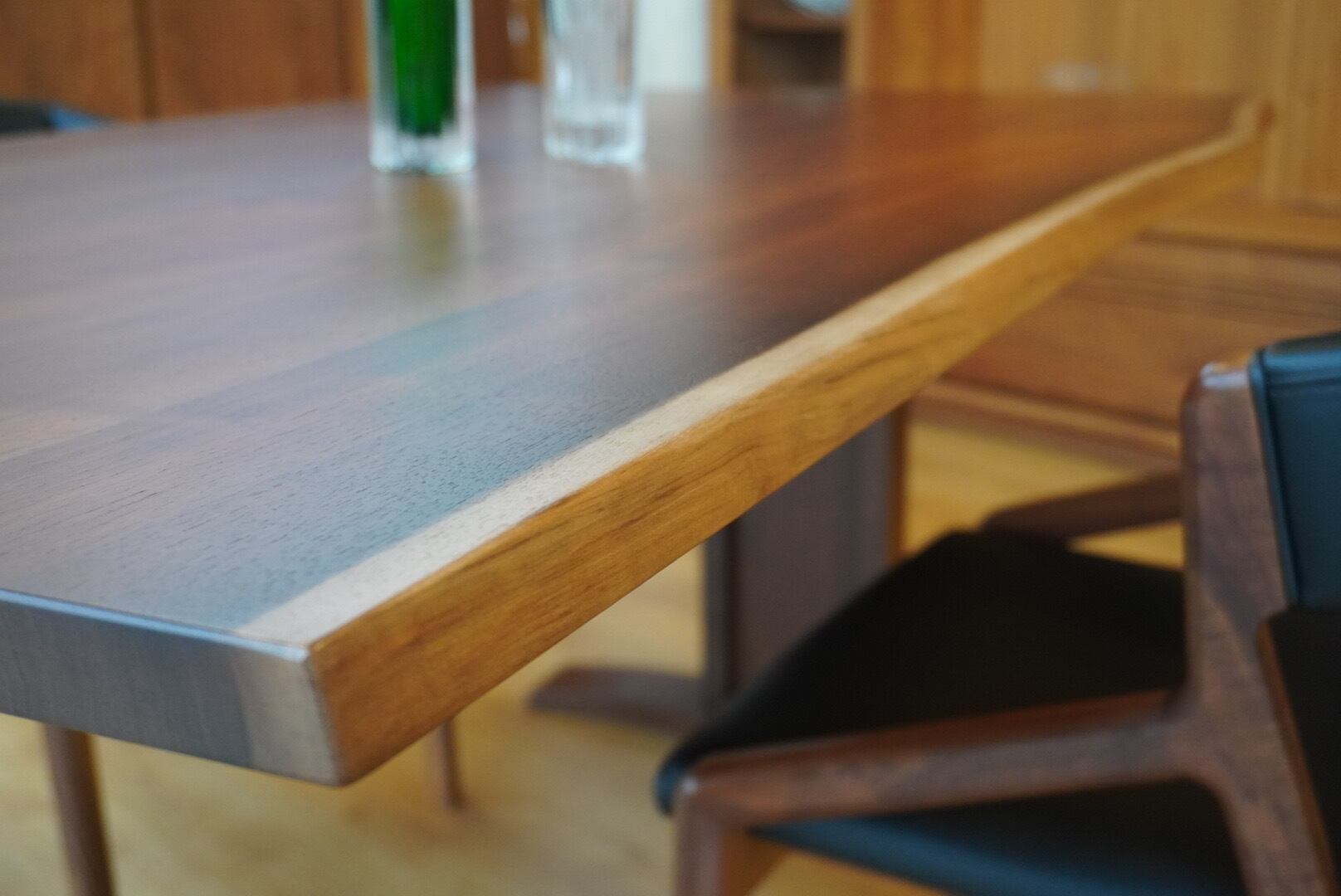 希少な〈白太入り〉自然耳つきウォールナット無垢テーブルです。
